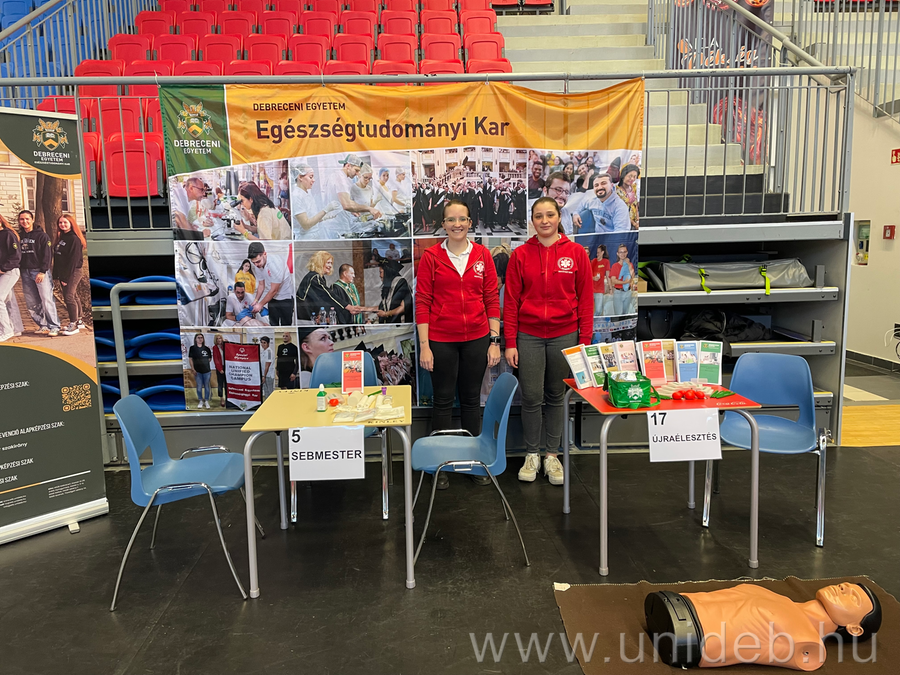 Az eseményen az Egészségtudományi Kar is képviseltette magát (Szelesné Dr. Árokszállási Andrea, Dr. Tóth György, Pappné Garai Anett, valamint Janyik Viktória és Mészáros Diána mentőtiszt hallgatók). Karunk hallgatói interaktív bemutatókkal várták az érdeklődőket, ahol a résztvevők megismerkedhettek a sebkötözés alapjaival, valamint kipróbálhatták az újraélesztés lépéseit szakmai iránymutatás mellett.