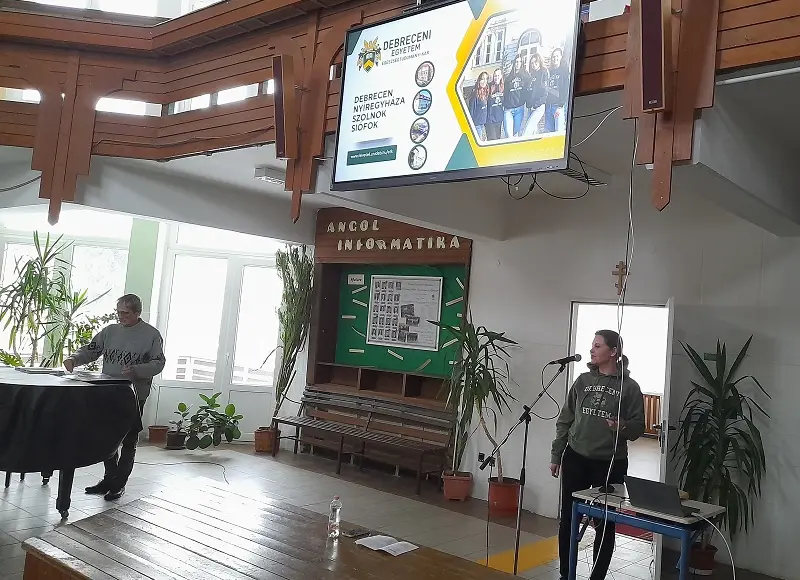 A Korányi Frigyes Görögkatolikus Általános Iskola, Gimnázium és Kollégium középiskolai diákjai számára szervezett tájékoztatón intézményünk képviseletében Rusinné Prof. Dr. Fedor Anita általános és tudományos dékánhelyettes; Dr. habil Fábián Gergely tanszékvezető és Dr. Tóth Anikó Panna adjunktus mutatták be Karunk képzési kínálatát a továbbtanulás előtt álló fiatalok számára. Az előadók átfogó képet adtak a hallgatókat váró tanulmányi lehetőségekről, különös hangsúlyt fektetve a szociális munkához kapcsolódó gyakorlati tapasztalatszerzési és munkavállalási lehetőségekre.