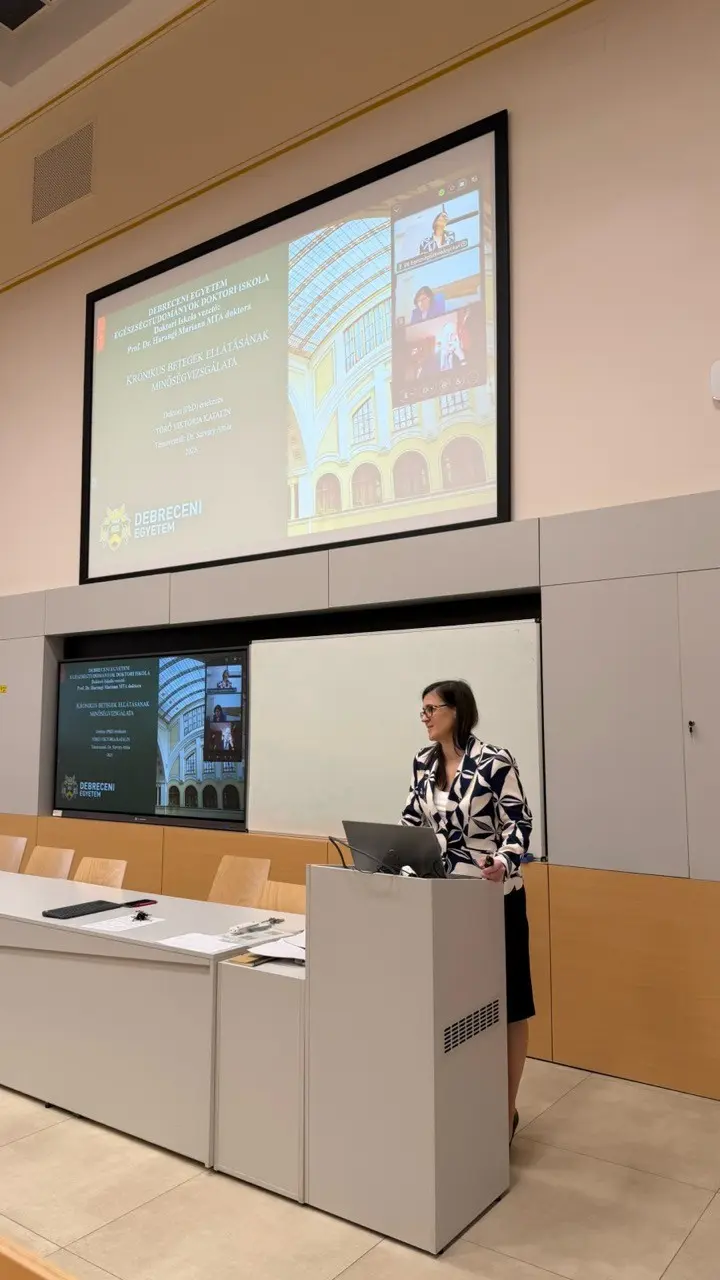 Törő Viktória Katalin kolléganőnk 2026. február 23-án a Debreceni Egyetem Egészségtudományok Doktori Iskolájában, egészségtudományok tudományterületen sikeresen megvédte doktori disszertációját, amelynek címe: Krónikus betegek ellátásának minőségvizsgálata, ezzel PhD fokozatot szerzett.